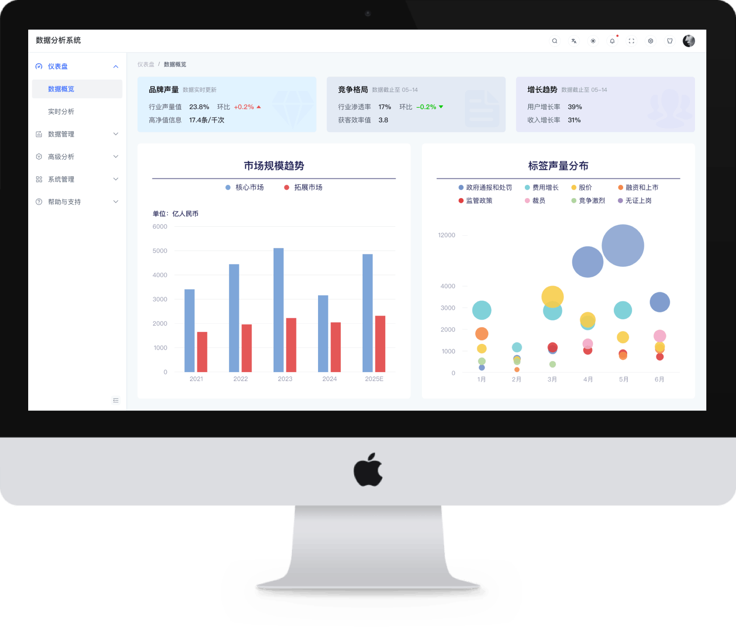 通过多维数据挖掘与智能分析,全面洞察品牌声量、用户认知与市场反馈,辅助研判竞争格局,助力企业优化品牌策略,实现精准传播与价值提升。